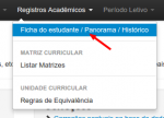 1) Acessar o Menu > Registros Acadêmicos > Ficha do Estudante / Panorama / Histórico: