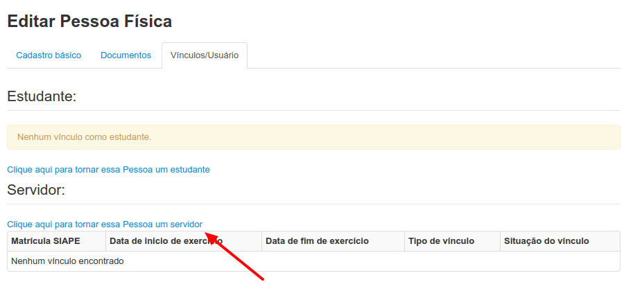 1) Para adicionar um vínculo basta clicar no link conforme imagem abaixo :