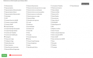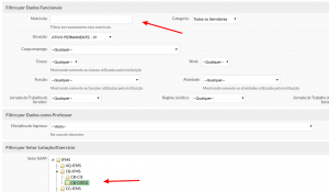 Há varios filtros que podem ser utilizados para selecionar os servidores, como matricula, setor ou campus, por exemplo.